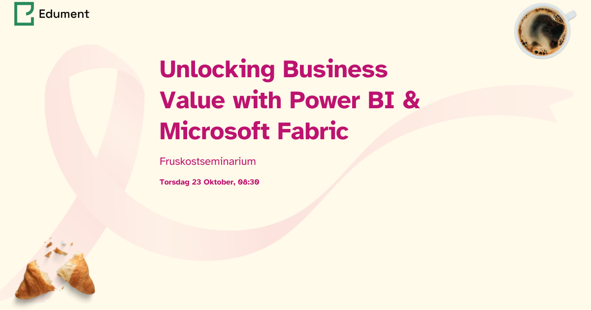 Välkommen till ett seminarium med Edument där vi bjuder på frukost och tar en djupdykning i hur Power BI och Microsoft Fabric kan låsa upp affärsvärde och förändra beslutsfattande.